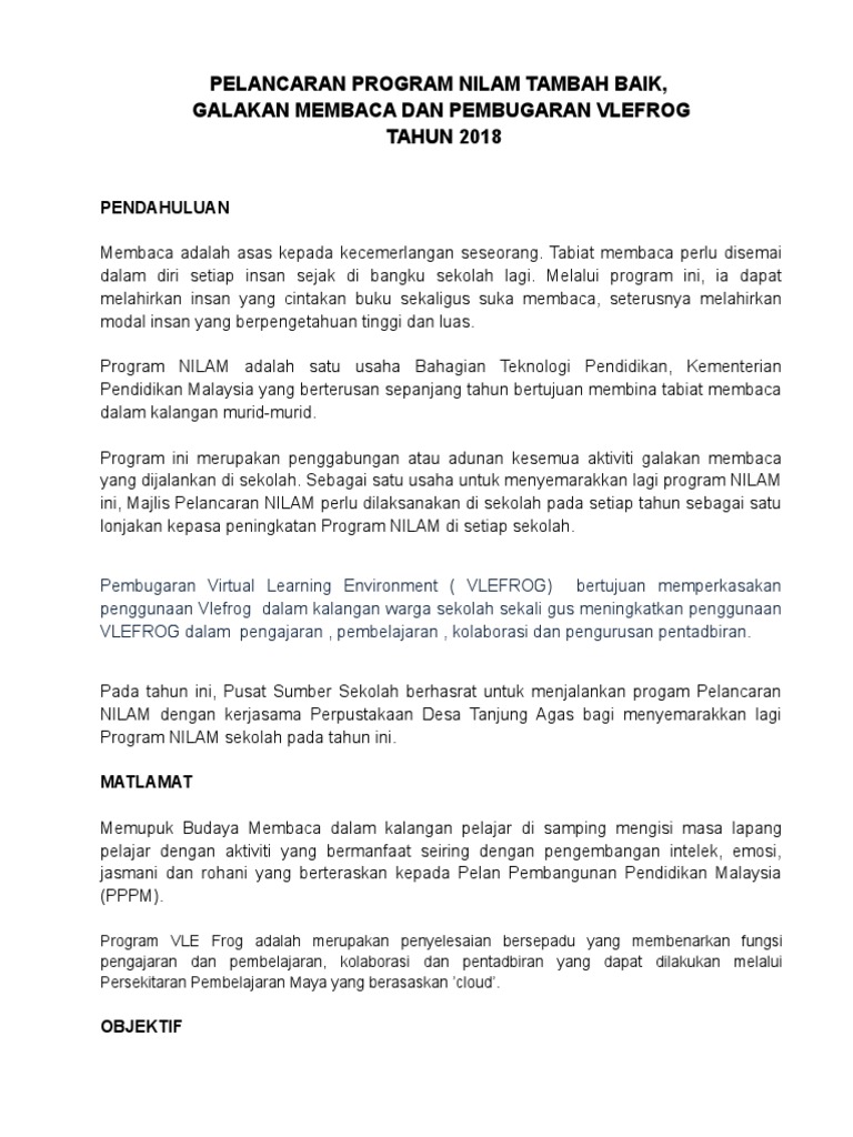 Kertas Kerja Program Pelancaran Nilam Tahun 2018 Pdf